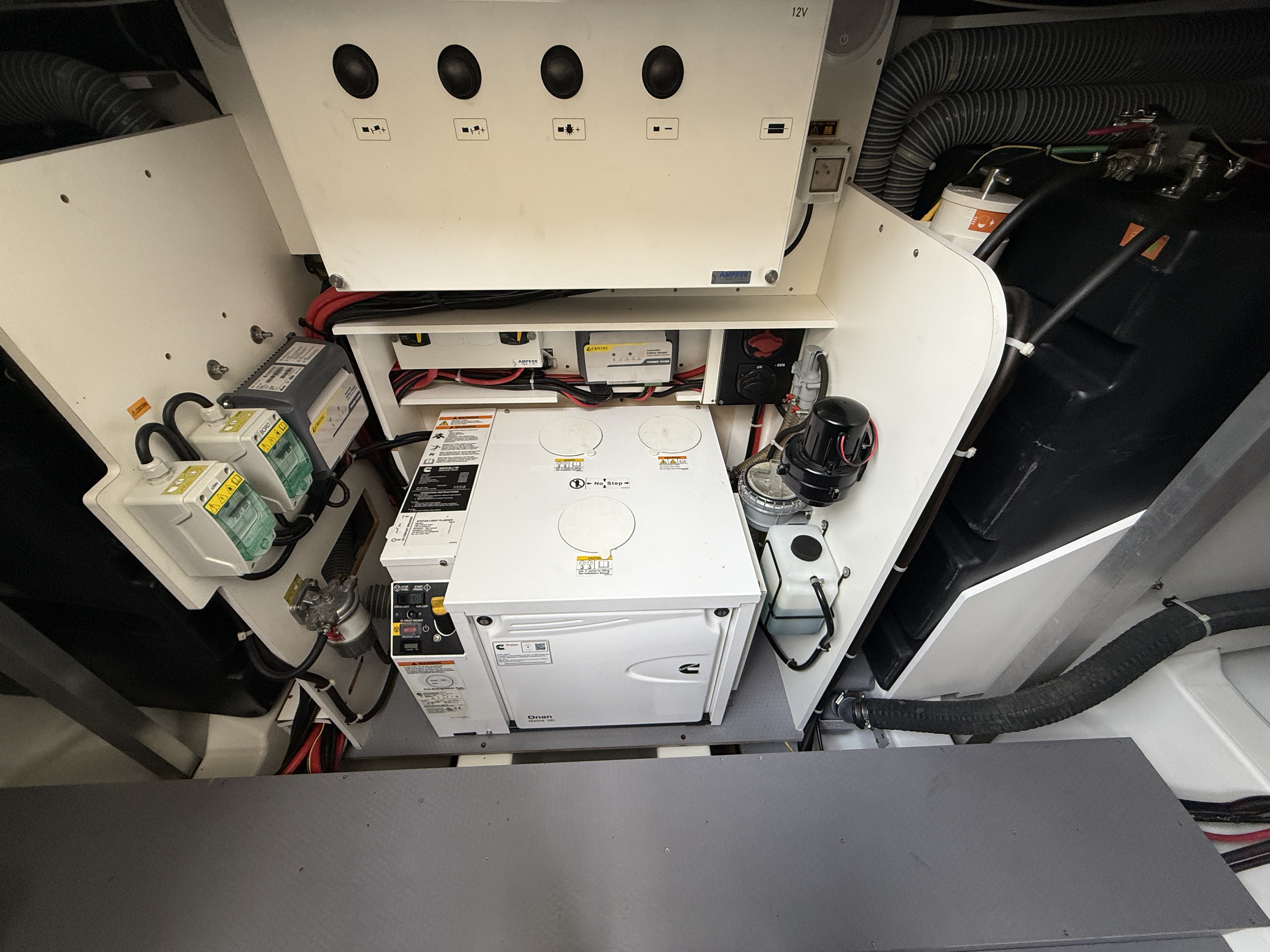 High-end technical equipment: generator, bow thruster, recent autopilot, VHF, trim tabs, electric windlass, and two cameras.