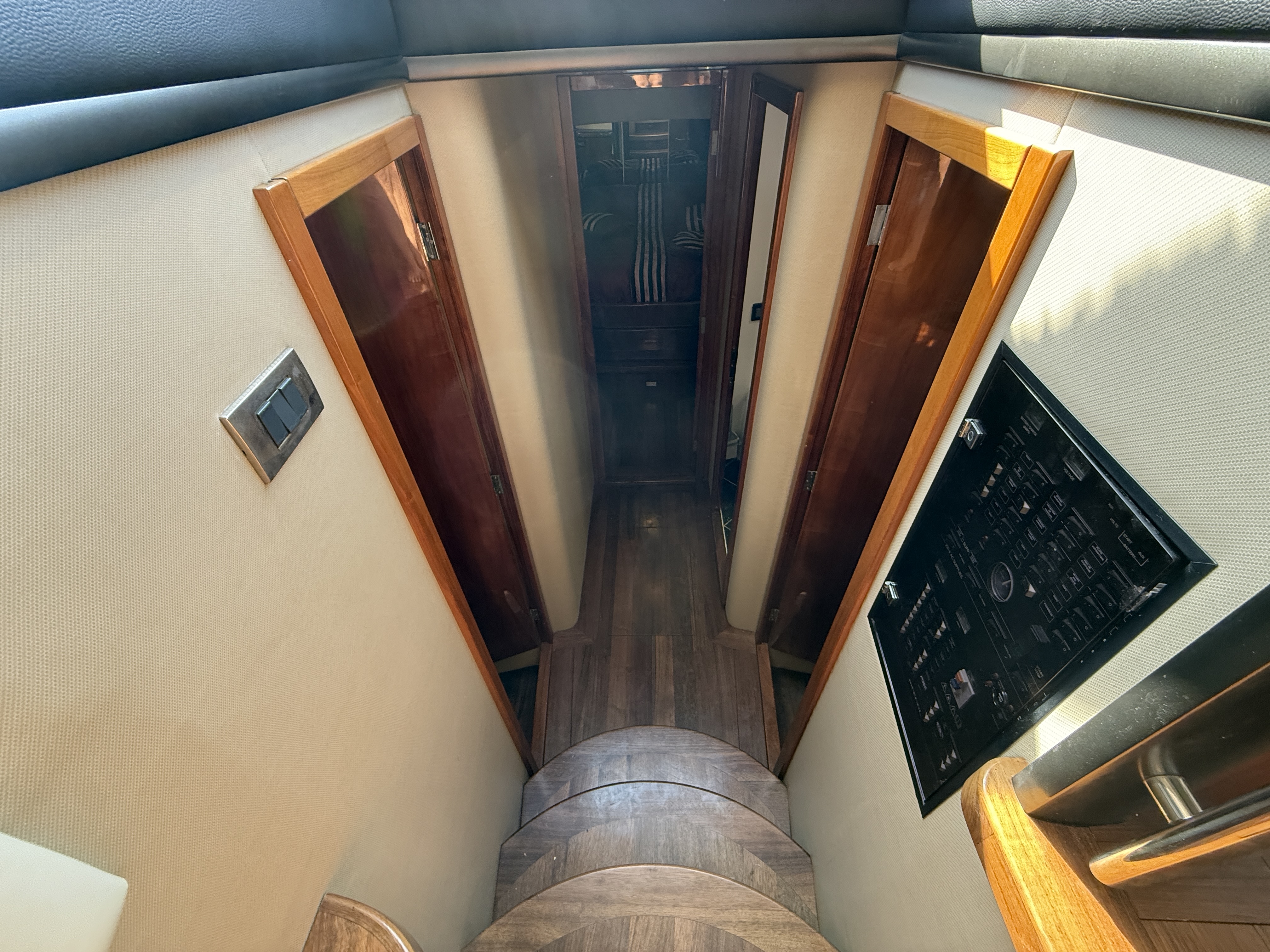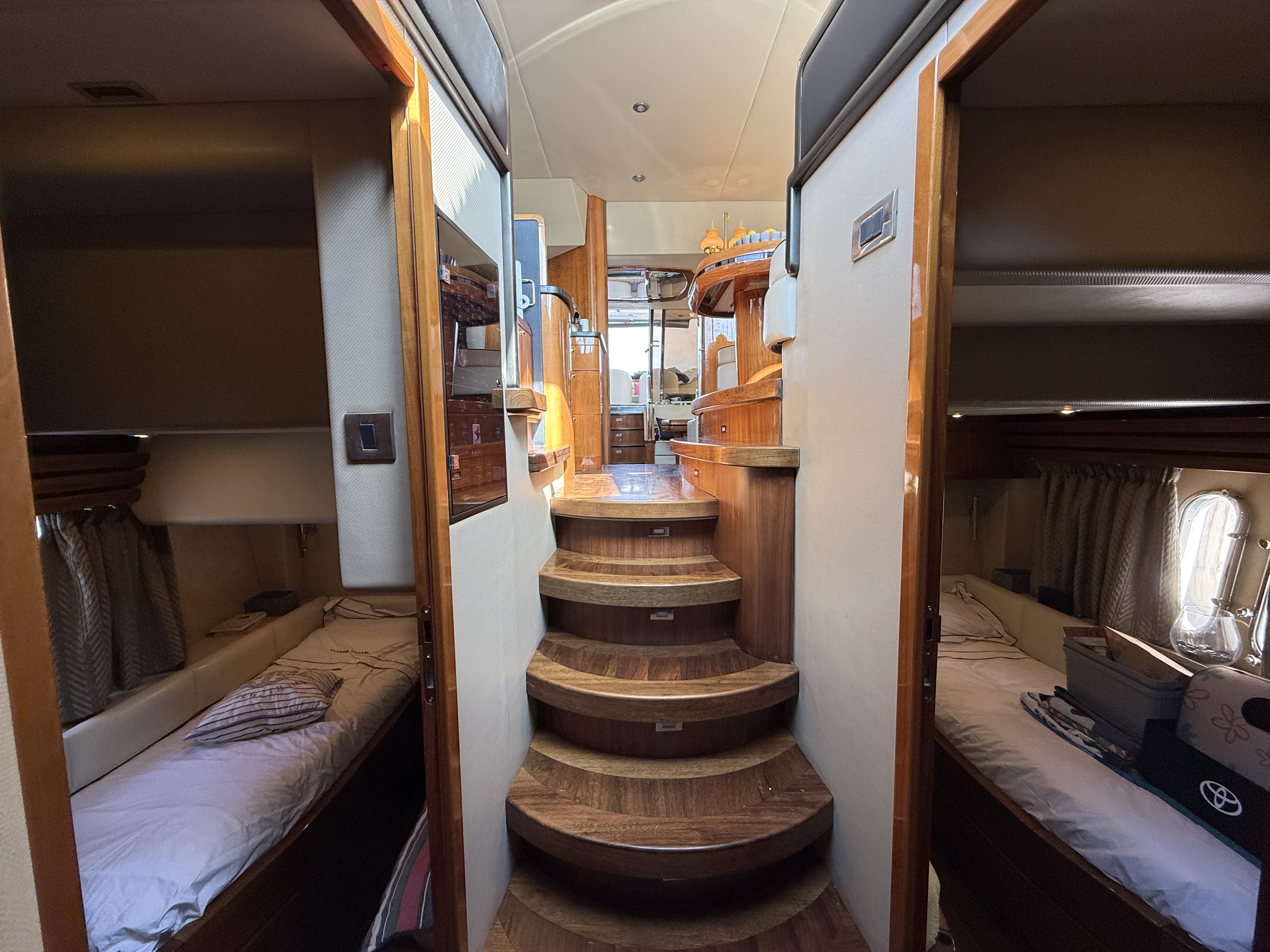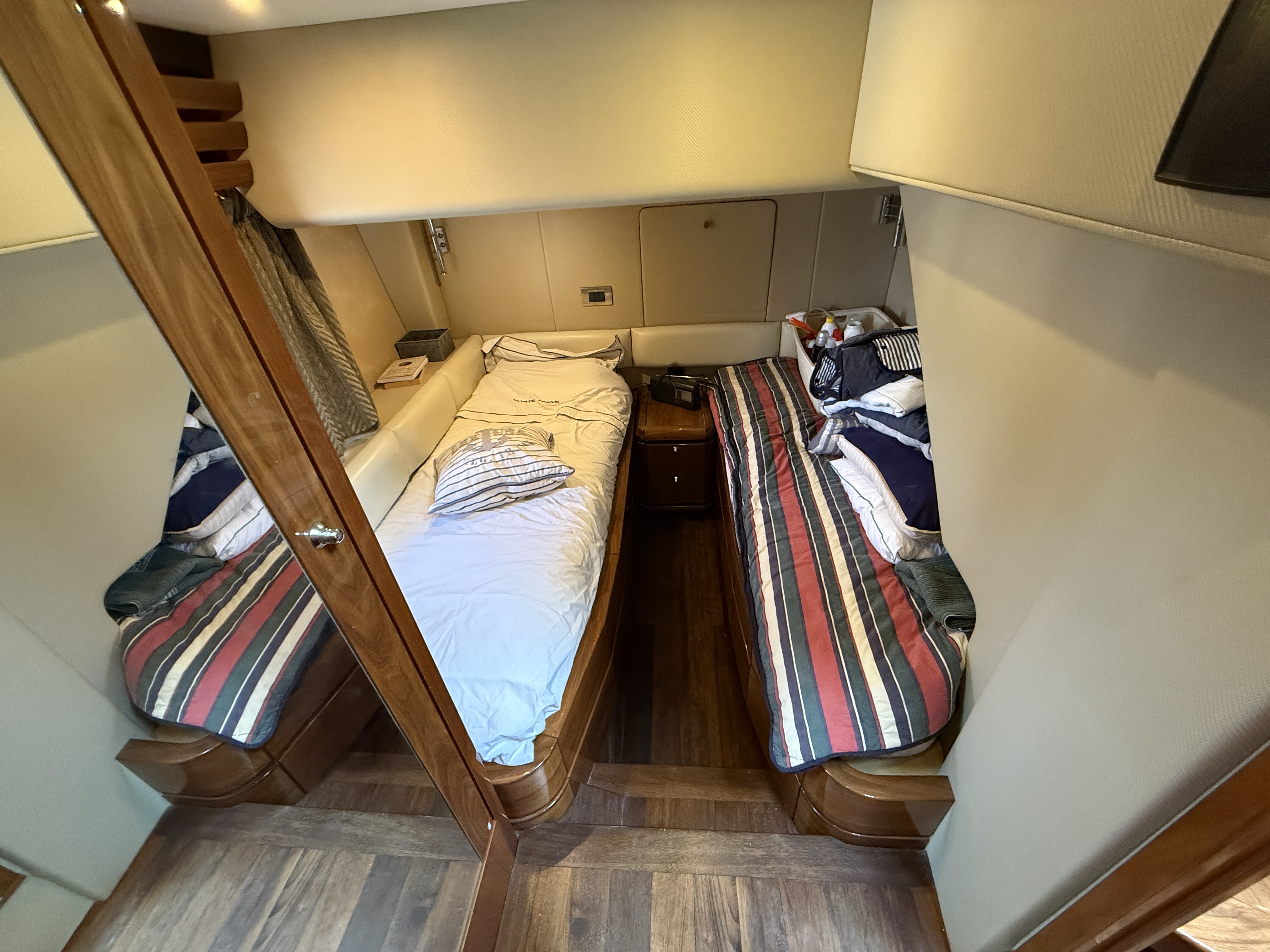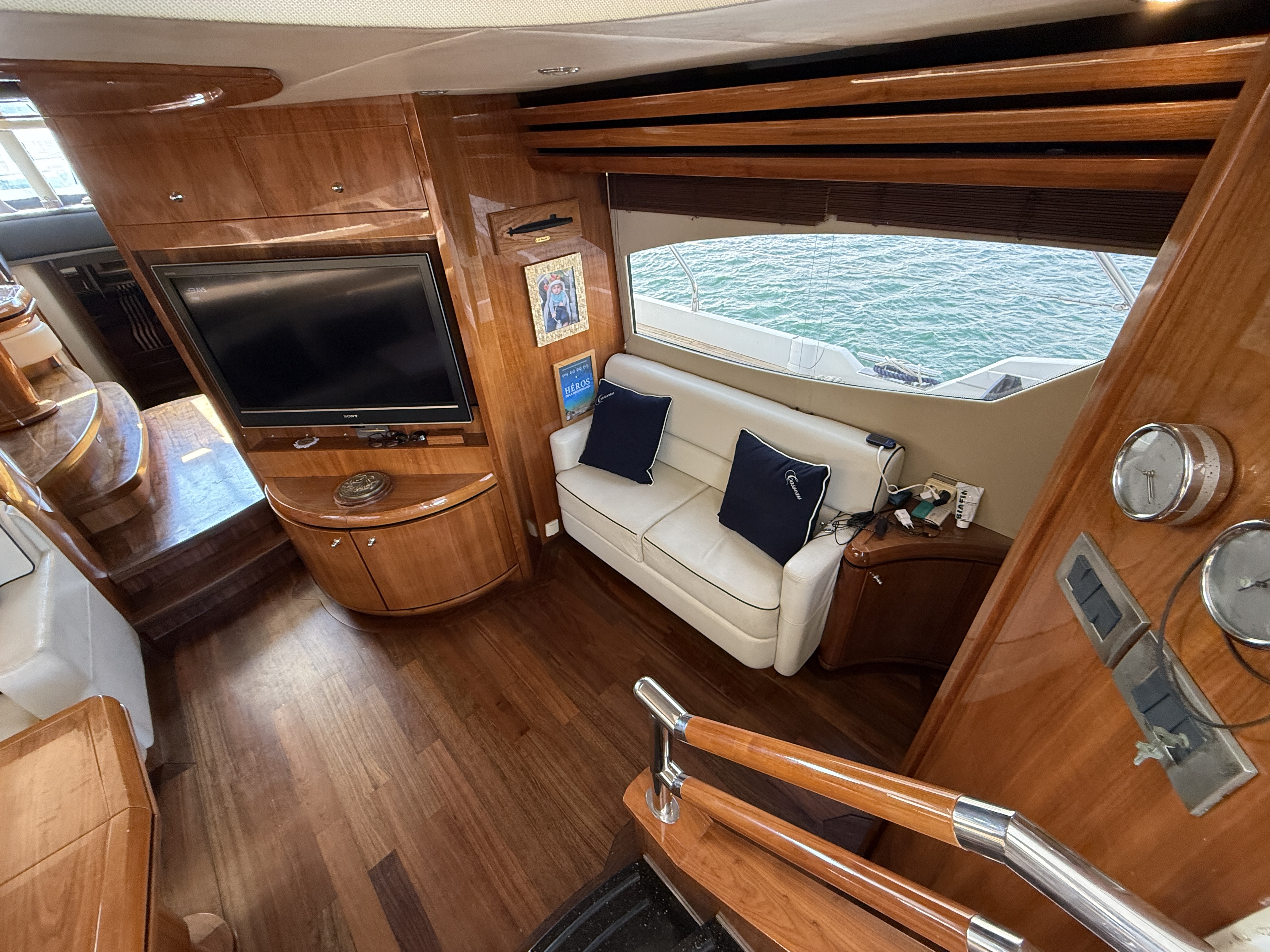 On board, the spaciousness is impressive: a bright saloon, a fully equipped galley, and, above all, a large, full-beam aft master cabin, a true private suite offering luxury and privacy. Three other cabins forward accommodate family and guests in absolute comfort.