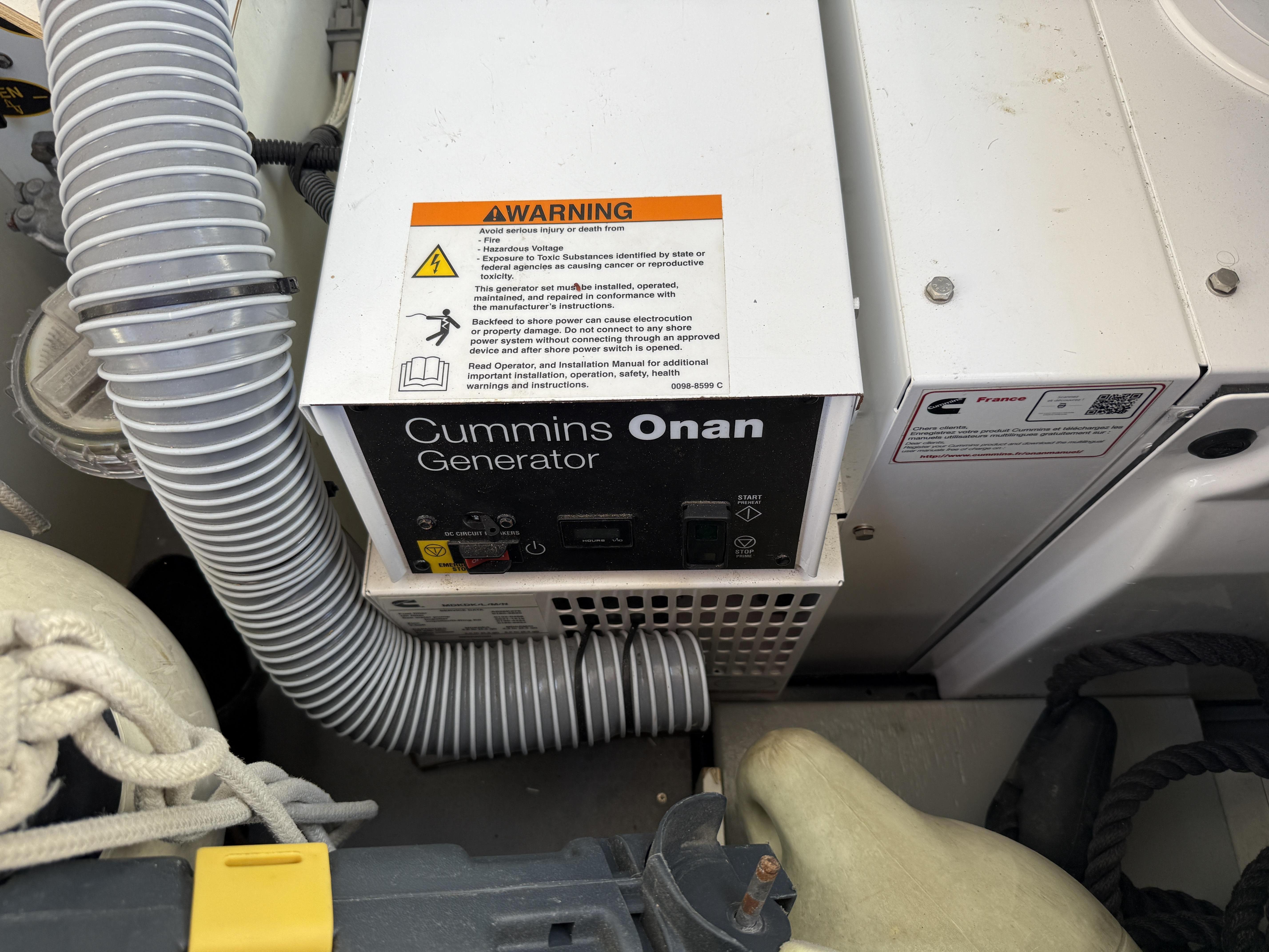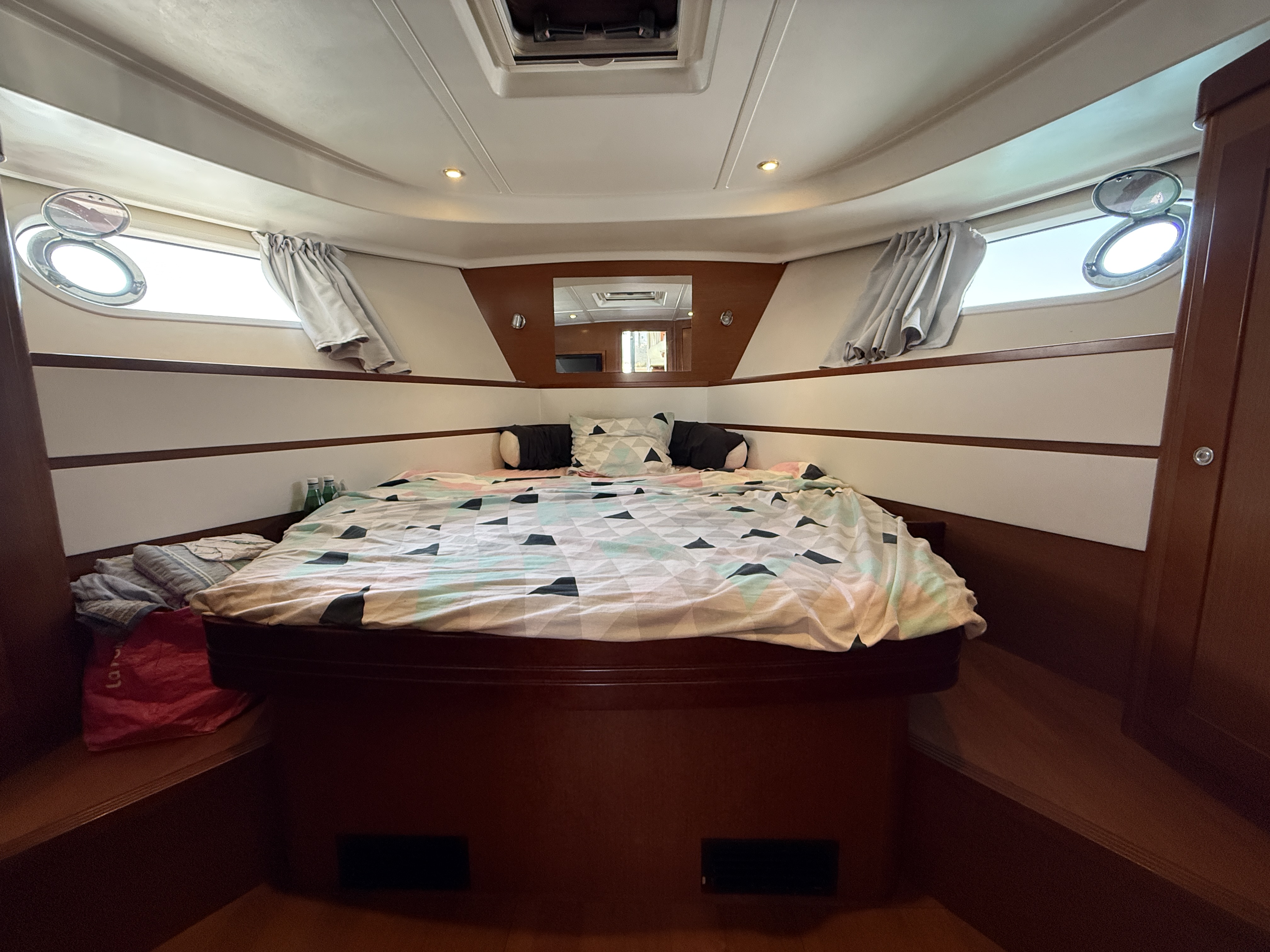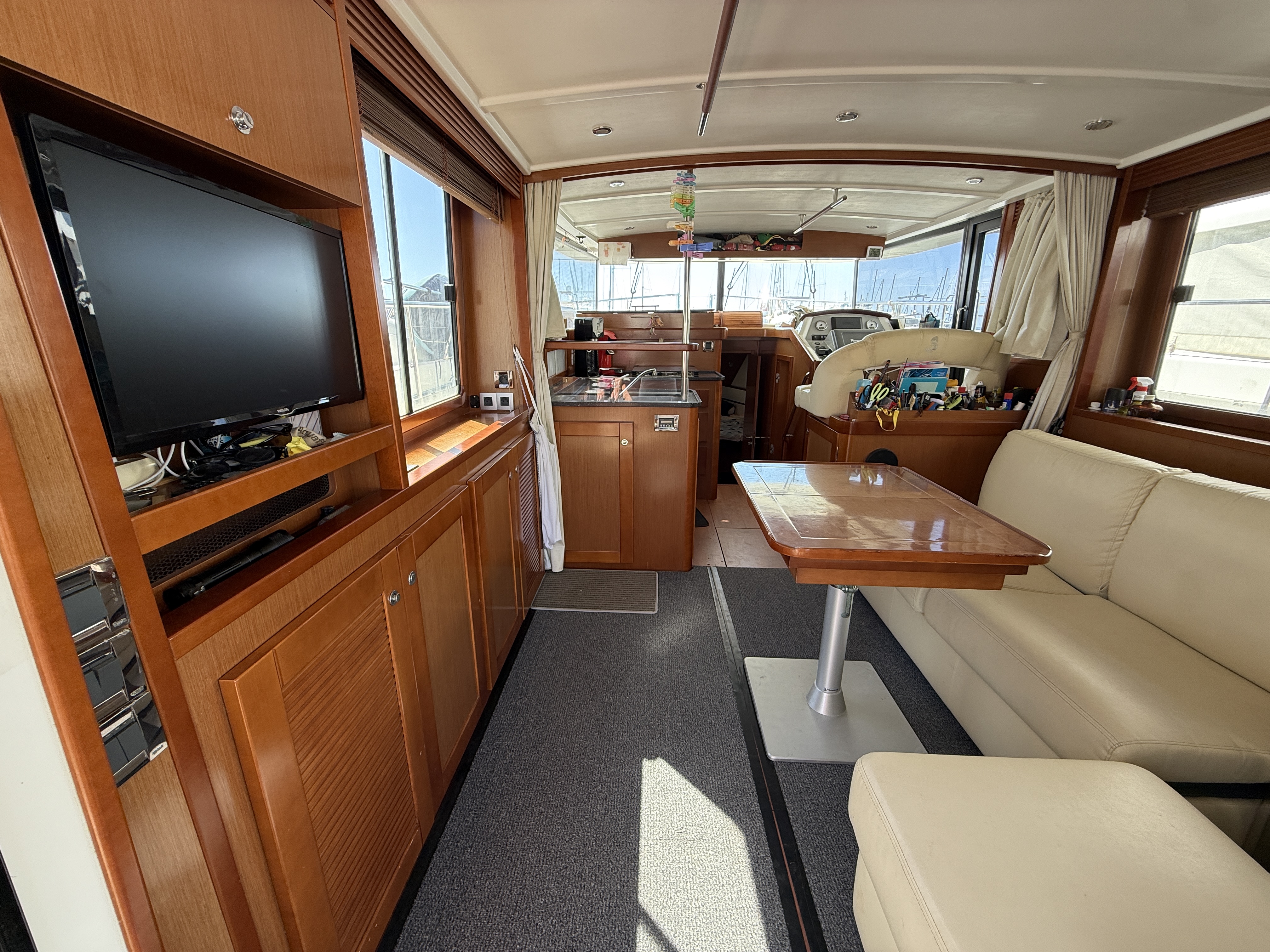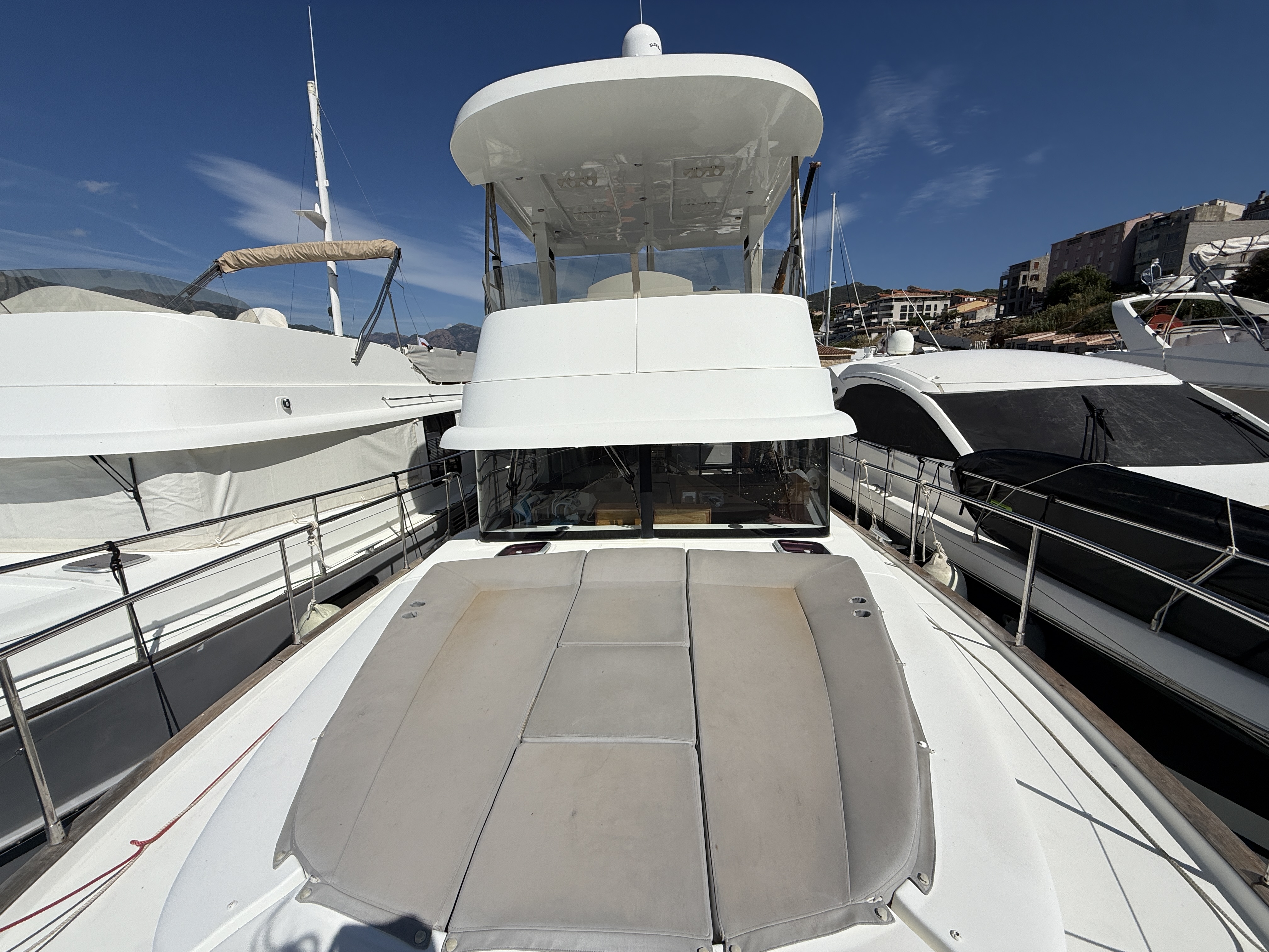 Powered by two 300 hp Volvo D4s, this Swift Trawler remains powerful, comfortable, and safe for cruising. Fully equipped, it features new electric controls (2023), bow and stern thrusters, electric trim tabs, recent batteries, a generator, inverters, as well as a hydraulic gangway and a crane on the flybridge for launching a tender. Its layout is designed for comfort: a rigid hardtop on the flybridge, aft teak platform, a winch on the flybridge, a grill, a refrigerator in the galley and on the flybridge, not to mention its electronic equipment: GPS, autopilot, depth sounder, speedometer, and VHF radio.