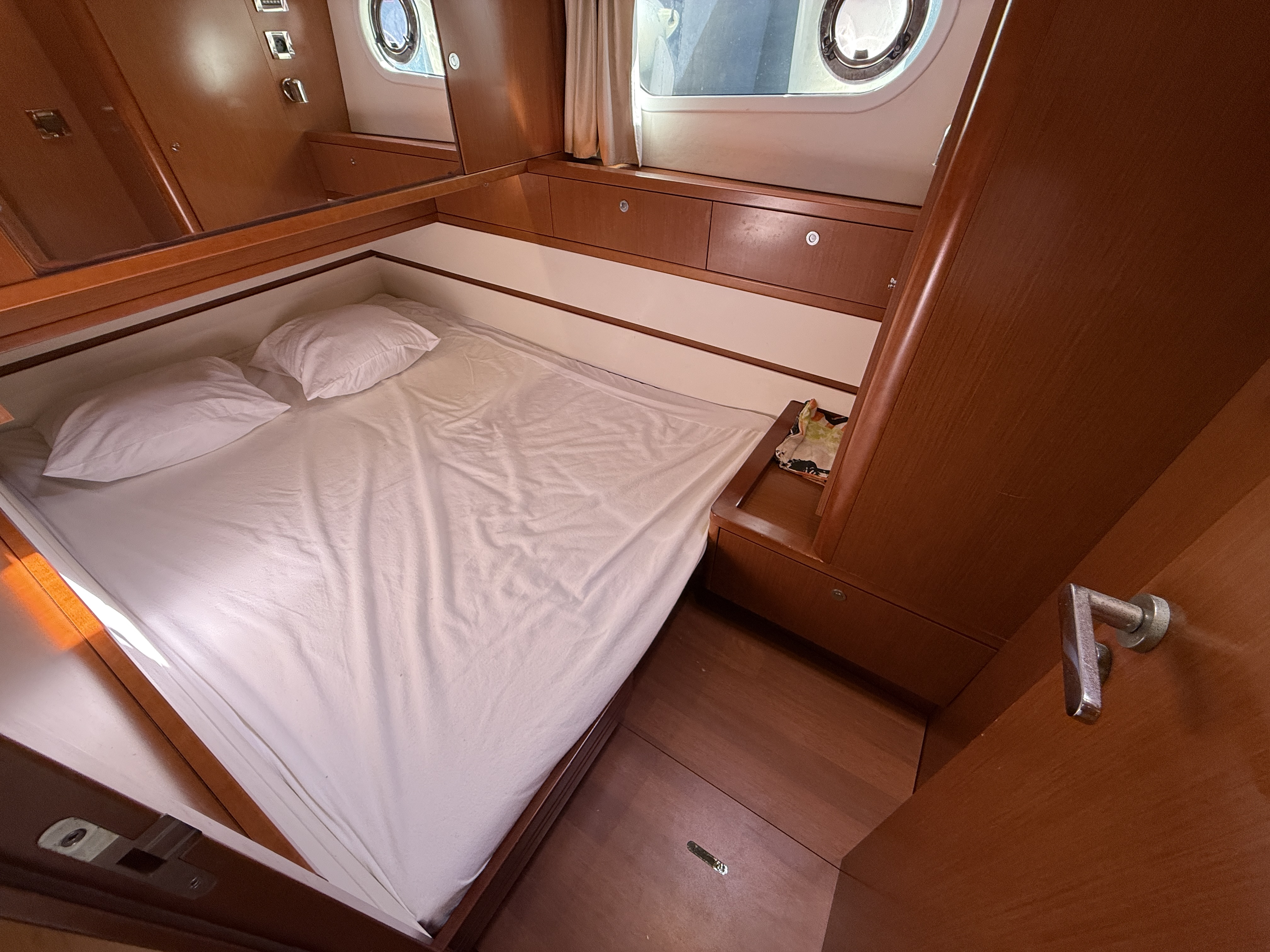 A robust trawler ready to sail, combining the seaworthy spirit of Beneteau with the amenities of a comfortable yacht.
