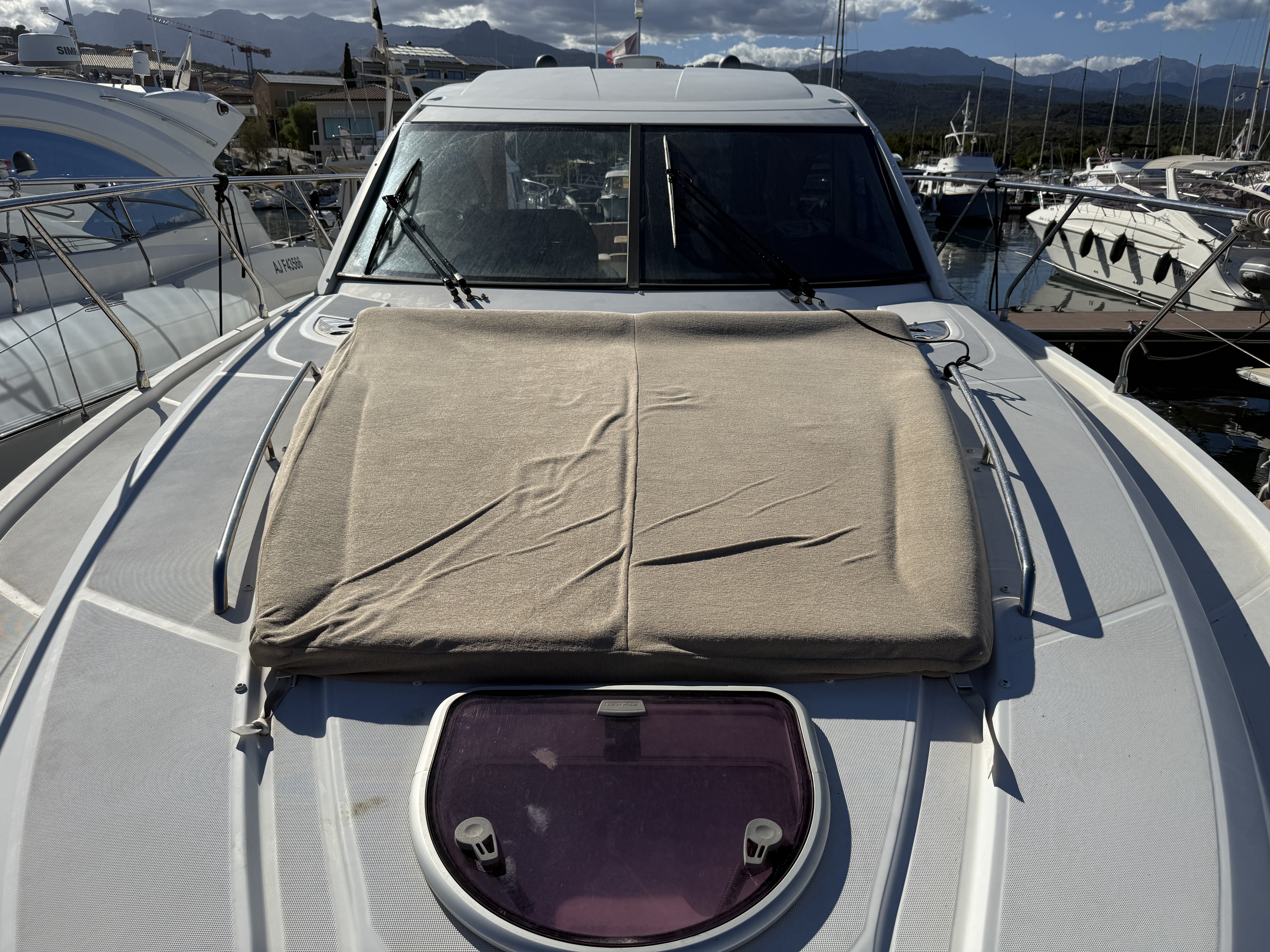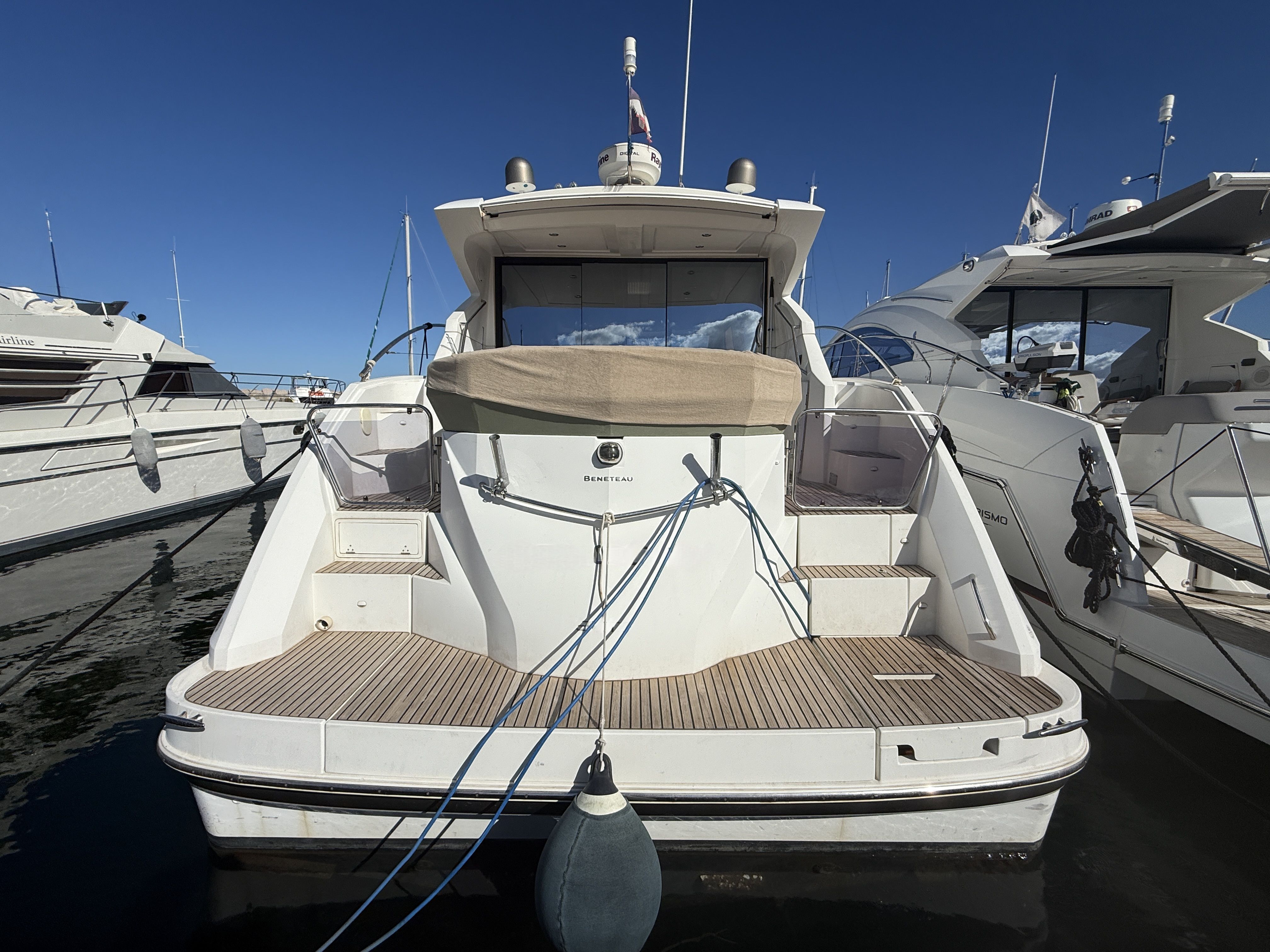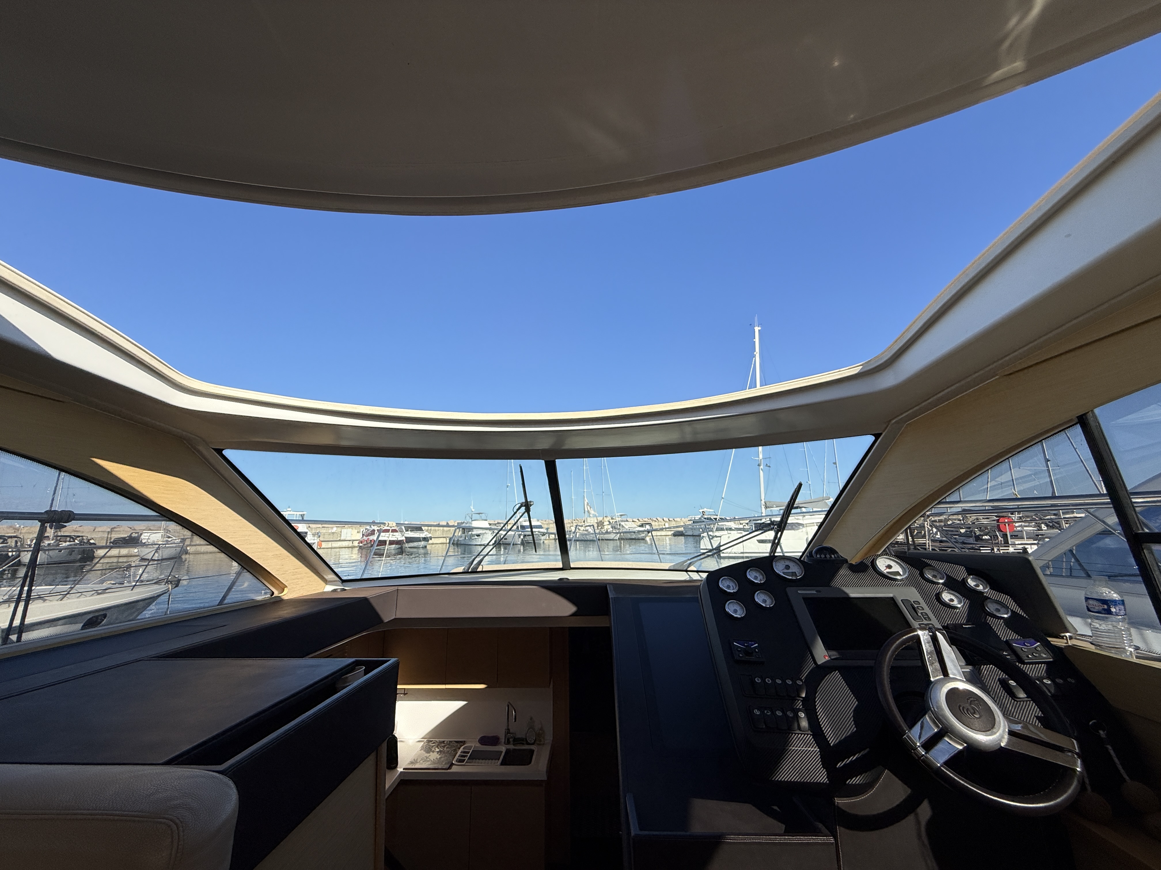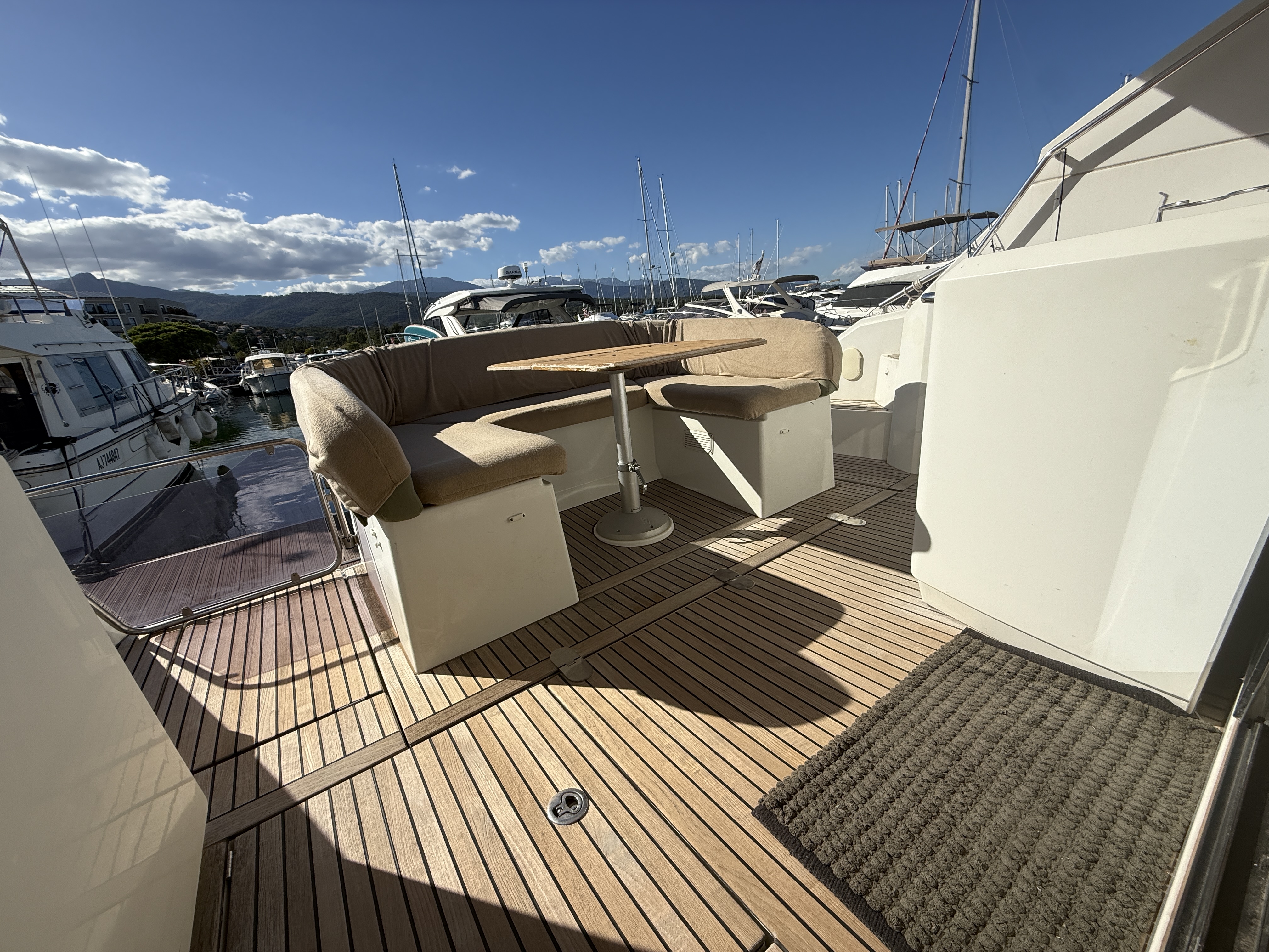 BENETEAU MONTE CARLO 47 HARD TOP, from 2010, one of the flagship models in the range, is appreciated for its IPS layout with joystick, which greatly facilitates maneuvering and frees up interior space thanks to the engine layout. With its three double cabins and two bathrooms, it offers rare spaciousness for a 47-foot boat, suitable for both family cruises and outings with friends.