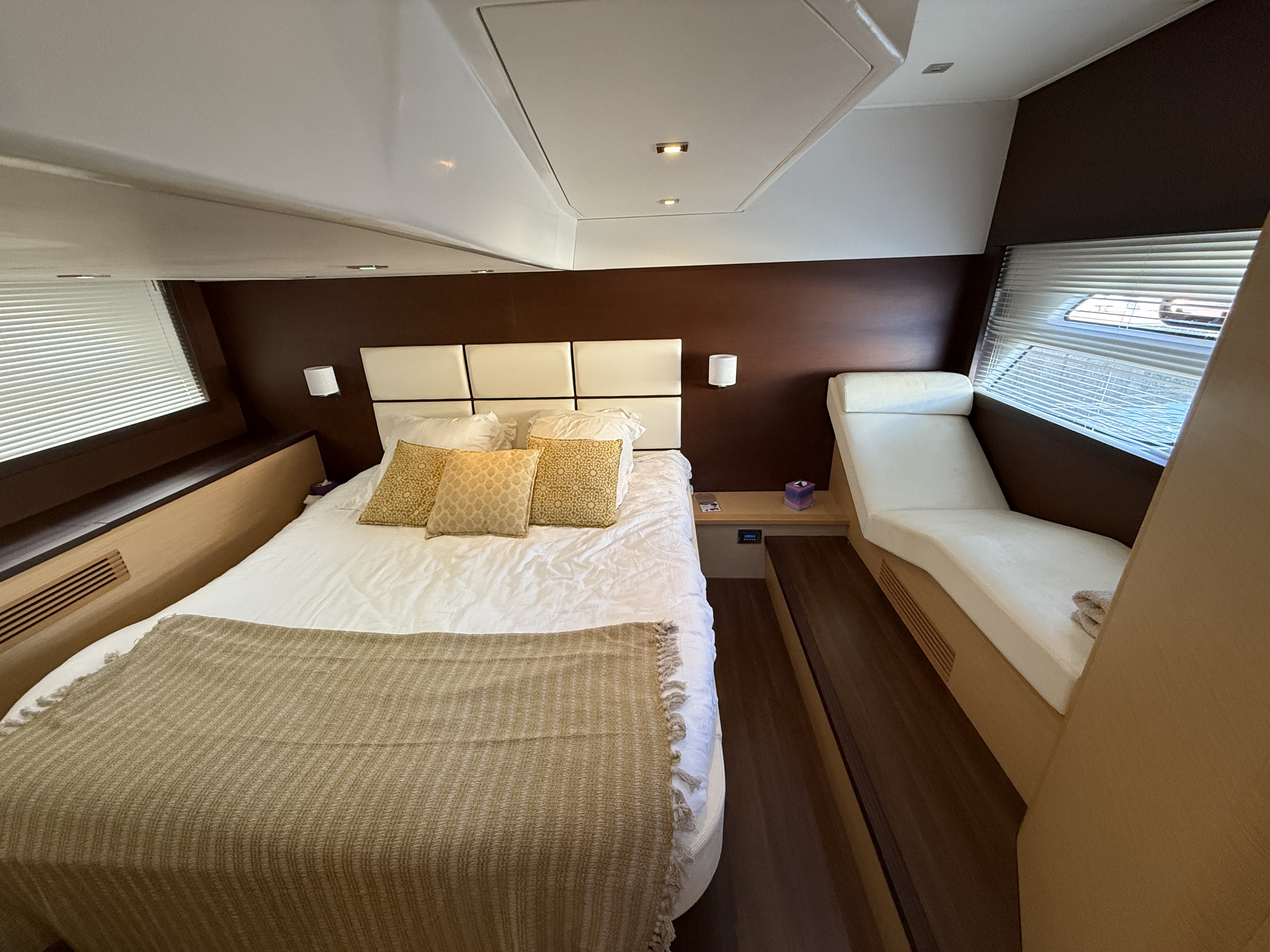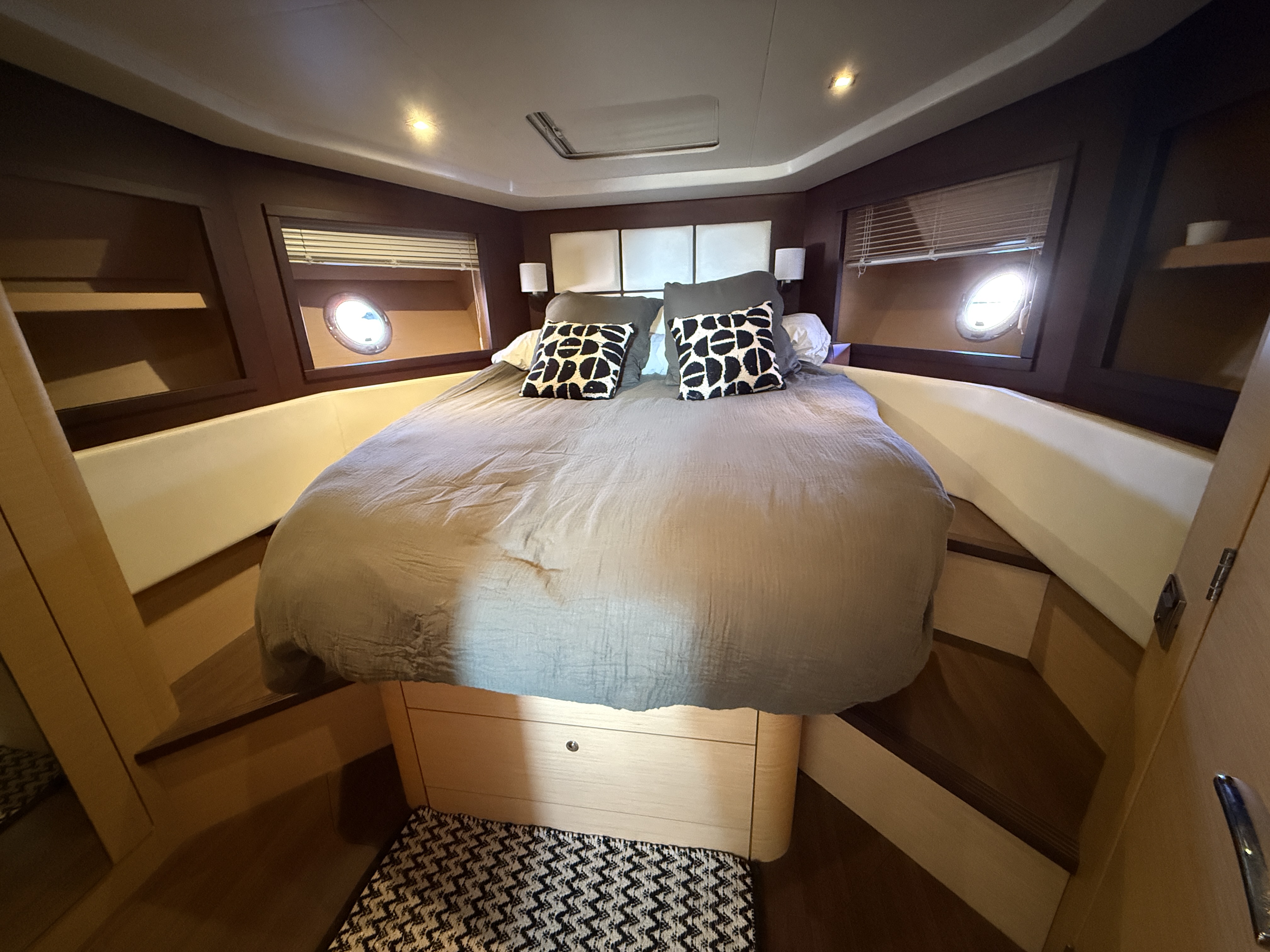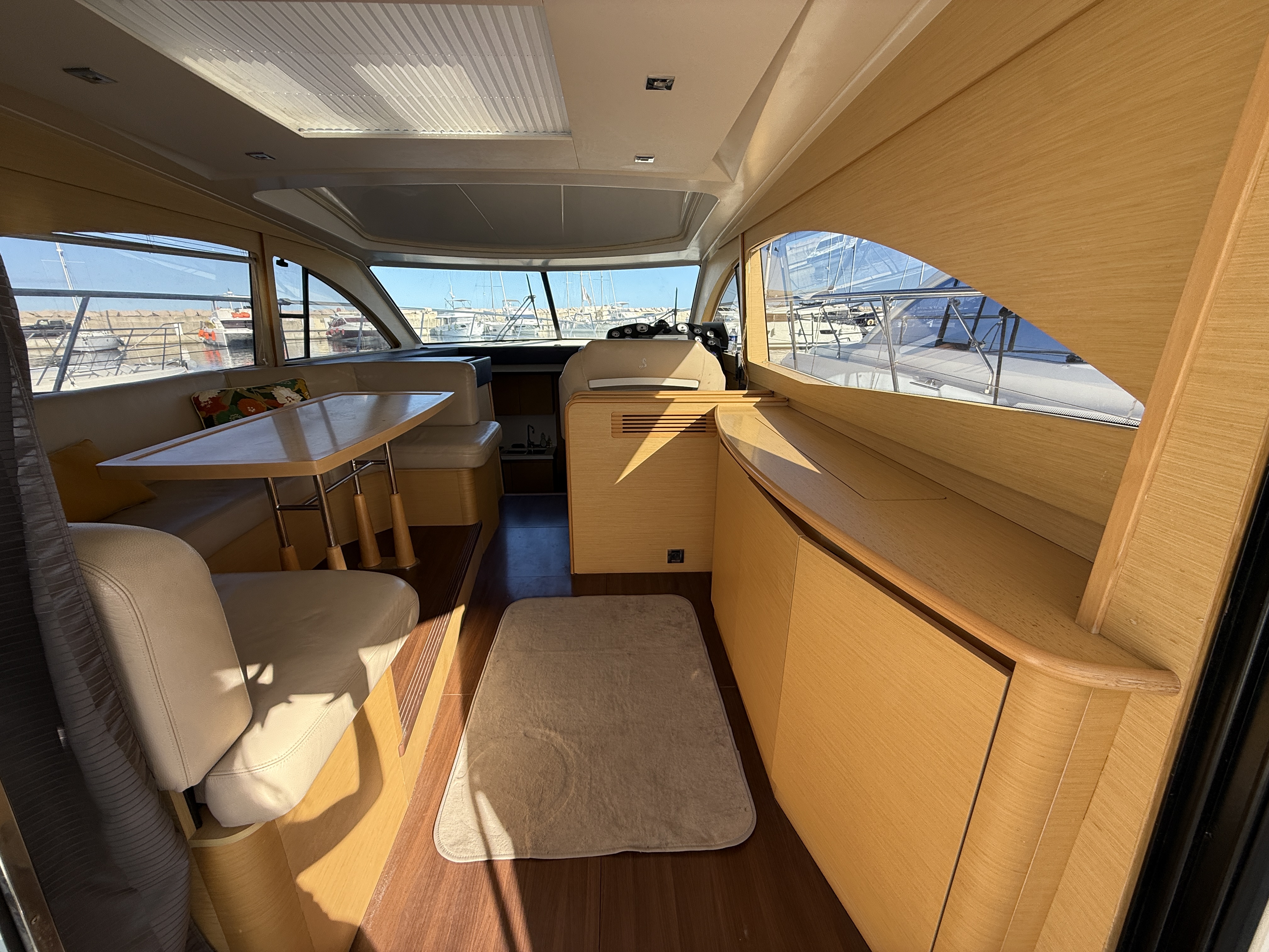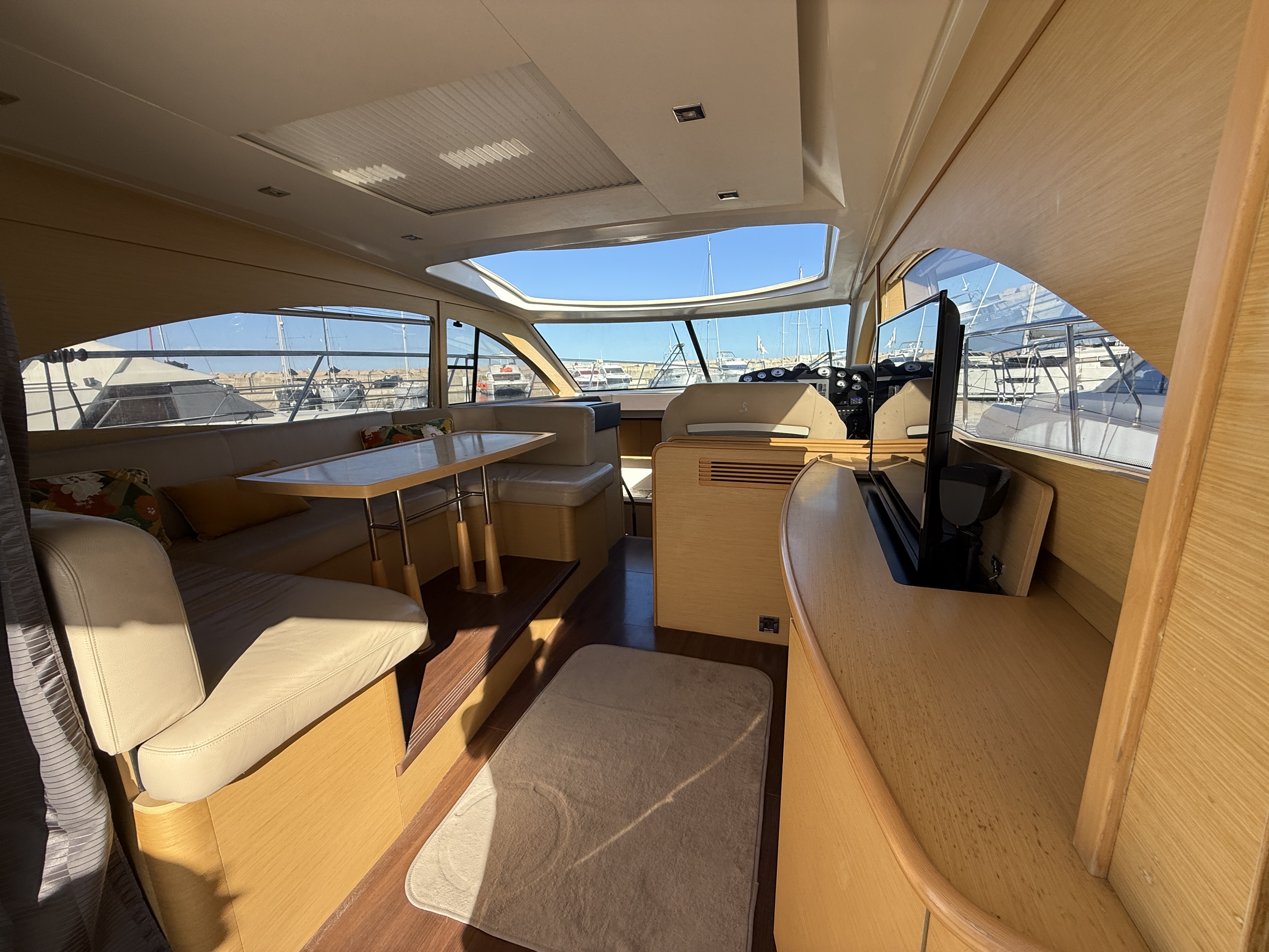 BENETEAU MONTE CARLO 47 HARD TOP, from 2010, one of the flagship models in the range, is appreciated for its IPS layout with joystick, which greatly facilitates maneuvering and frees up interior space thanks to the engine layout. With its three double cabins and two bathrooms, it offers rare spaciousness for a 47-foot boat, suitable for both family cruises and outings with friends.