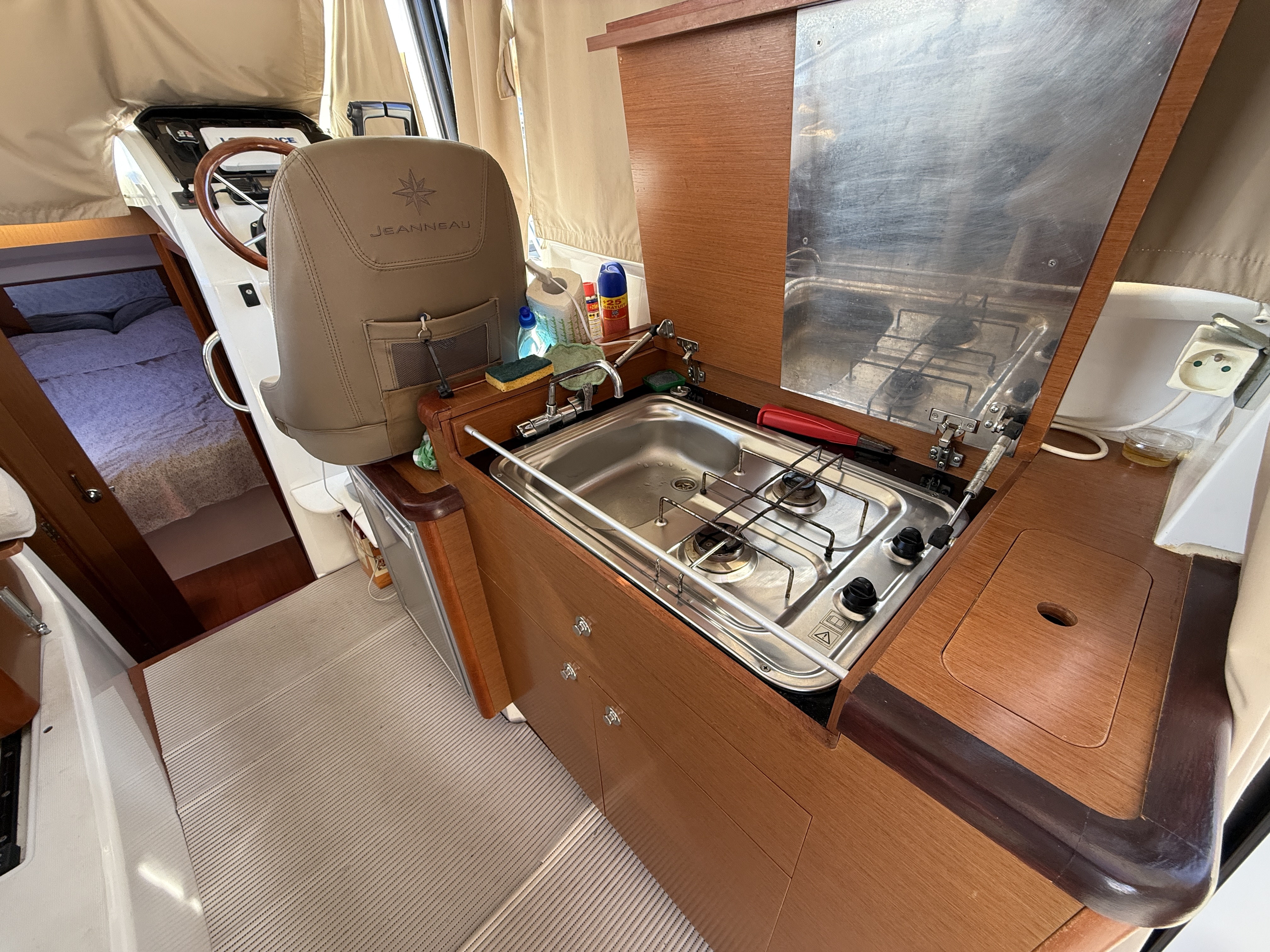 Equipped galley and bright saloon
