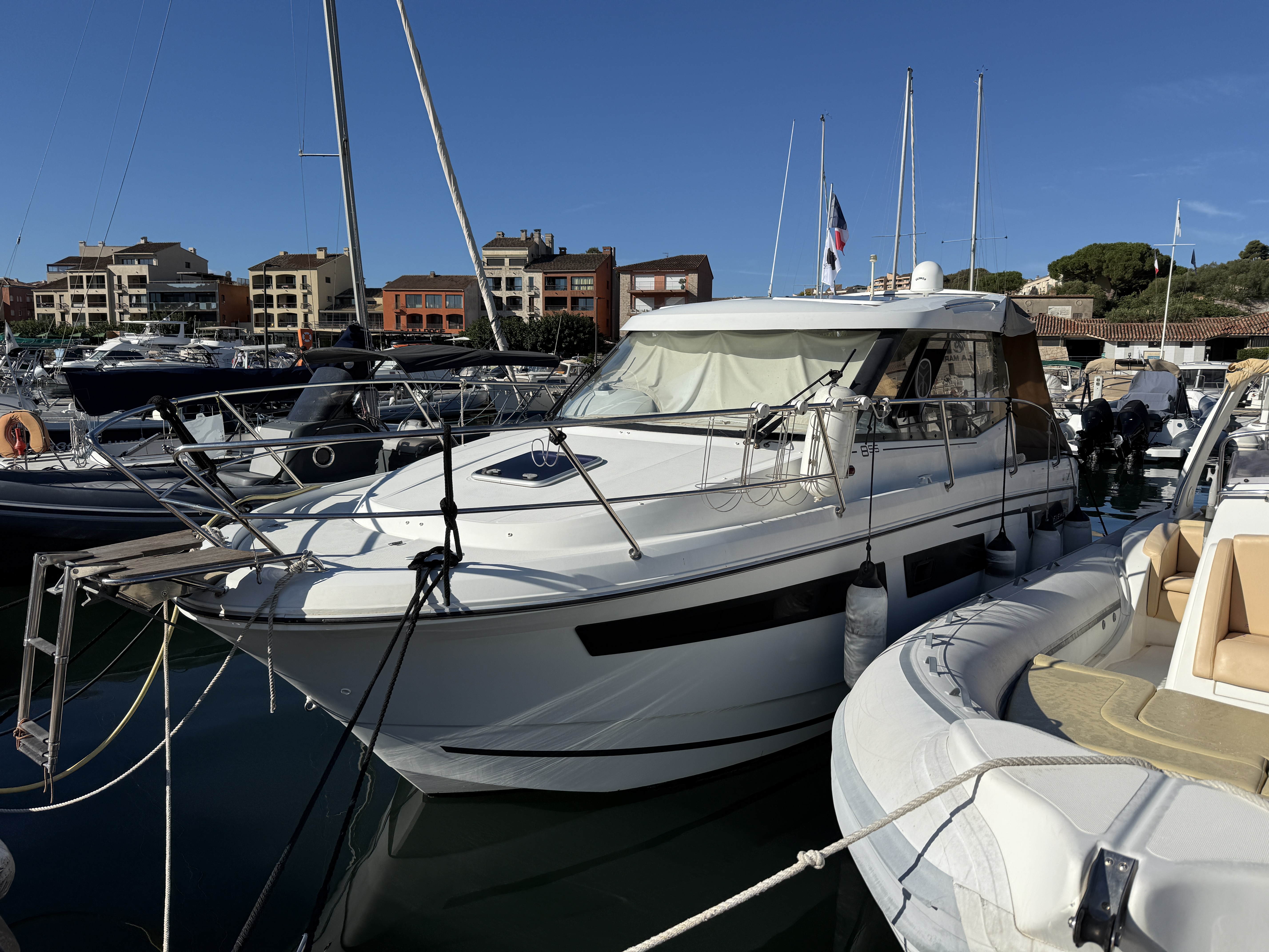 JEANNEAU MERRY FISHER 855 PREFERENCE from 2015 (launched in 2016) is a versatile boat, ideal for comfortable coastal cruising and day trips. It is a pre-owned boat, acquired by its current owner in 2017, and has only 265 hours of sailing time.