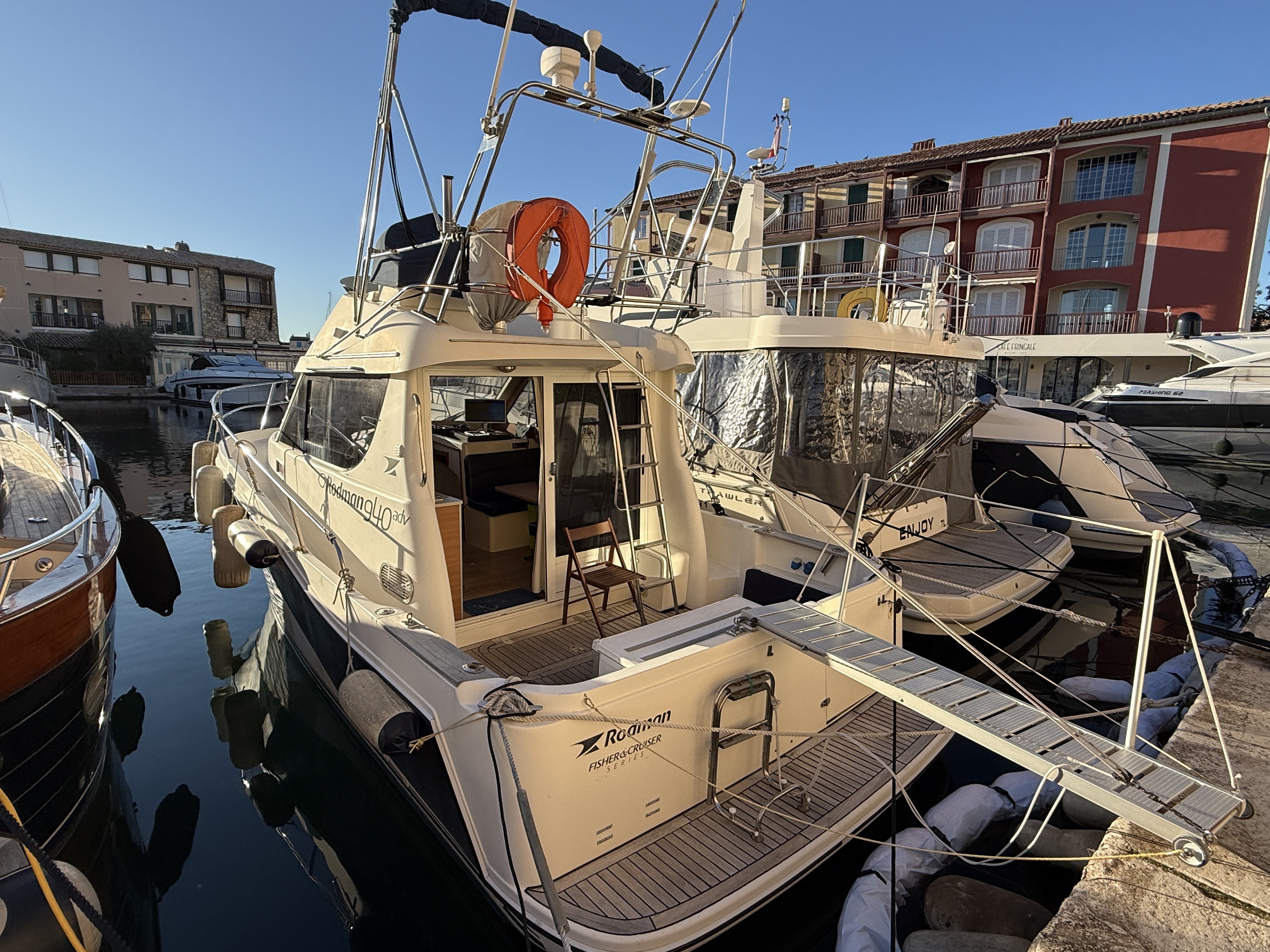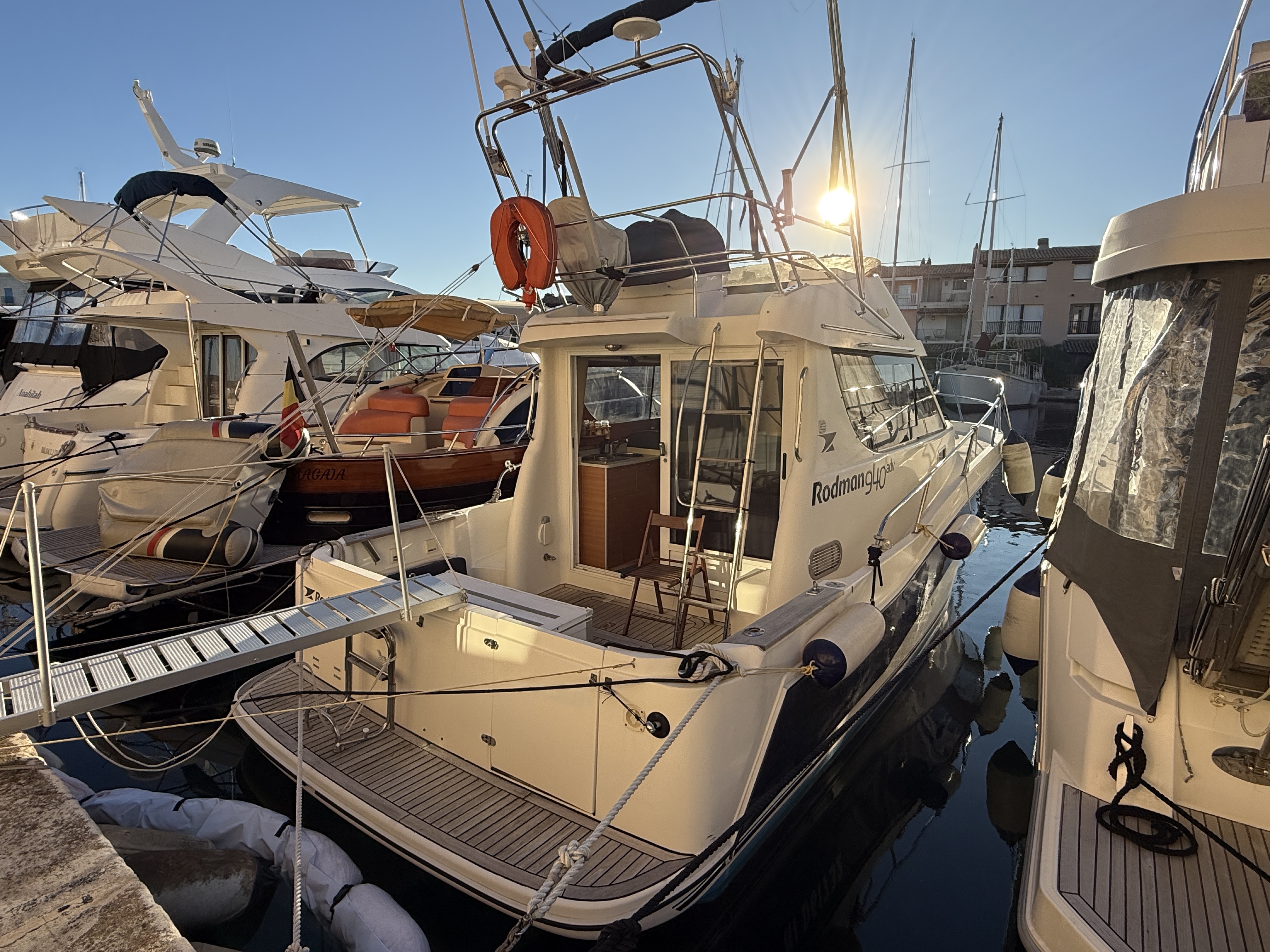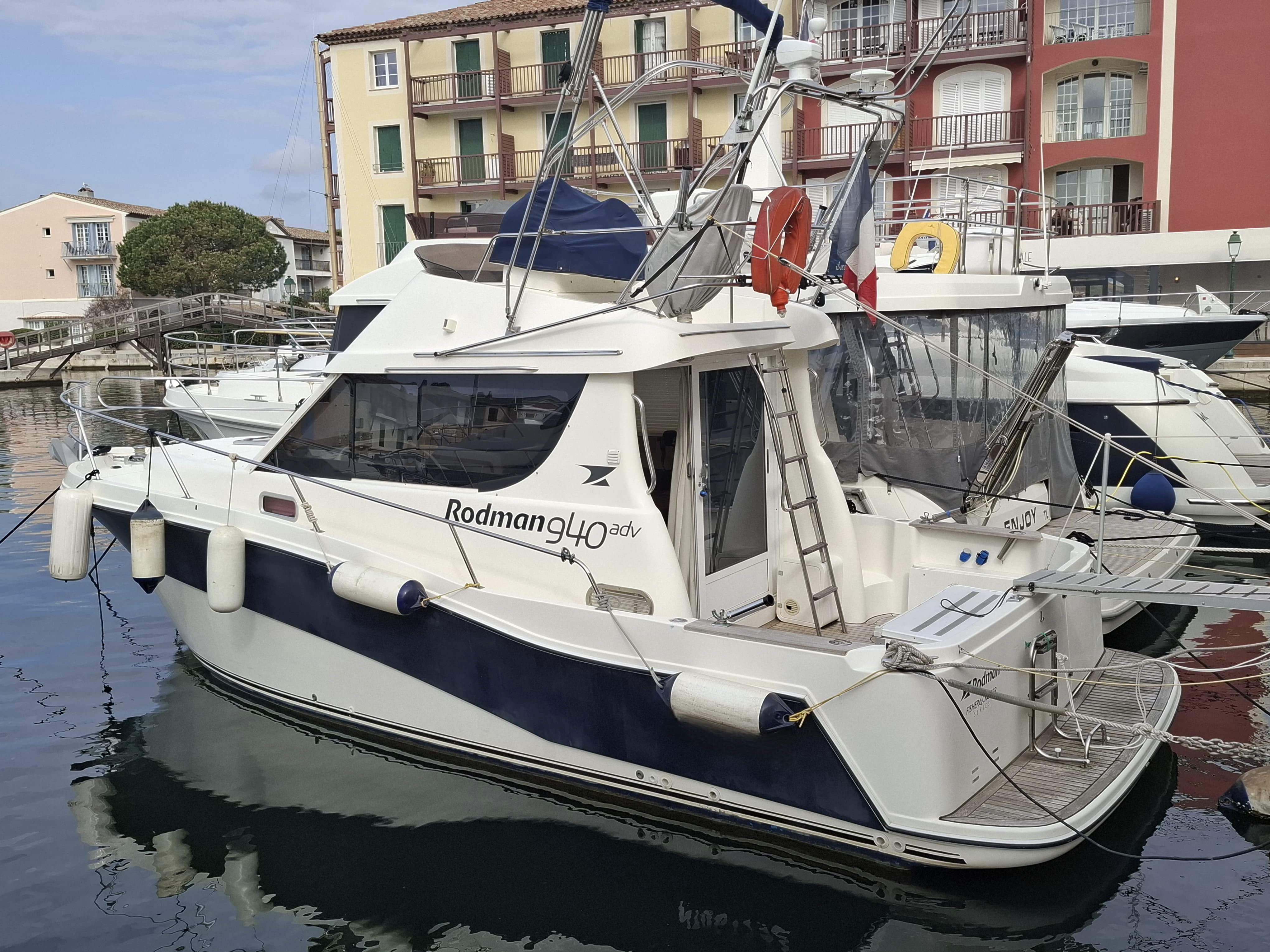 RODMAN 9.40 Fly from 2008, renowned for its robust construction and reliability at sea. It is powered by twin 225hp Volvo EVC D4 engines, meticulously maintained and serviced.