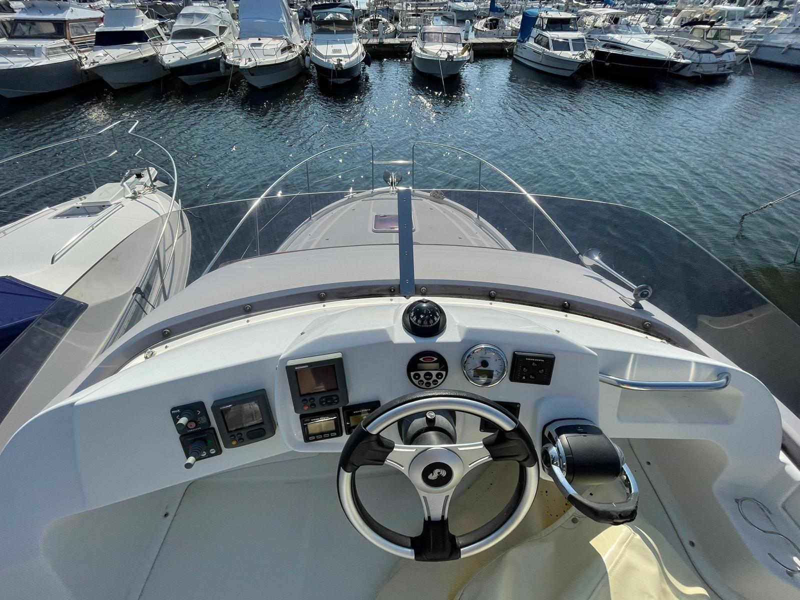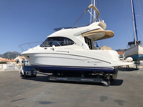 BENETEAU ANTARES 30 FLY, from 2011, third owner, powered by a Volvo D6 370 with only 450 hours of operation, demonstrating moderate use and well-maintained mechanics.